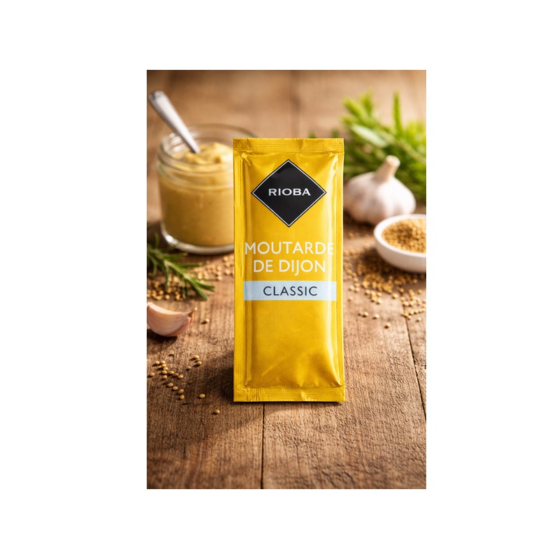 Le Stick Moutarde de Dijon Rioba 4g est une portion individuelle pratique de moutarde de Dijon.