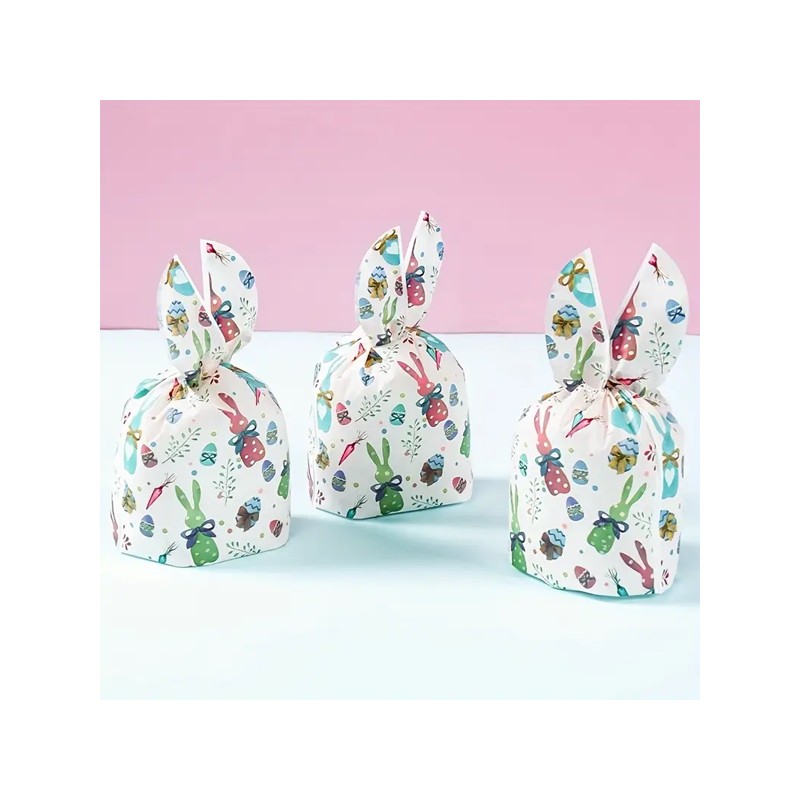Avec son design cartoon de lapin et œufs de Pâques, cette pochette en plastique est idéale pour les chasses aux œufs, les fêtes et les surprises gourmandes.