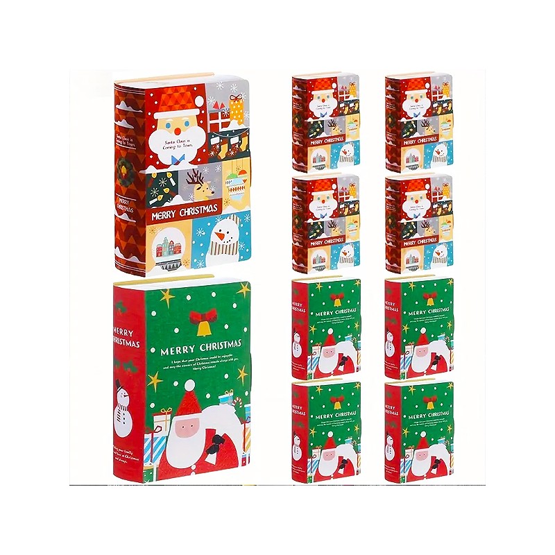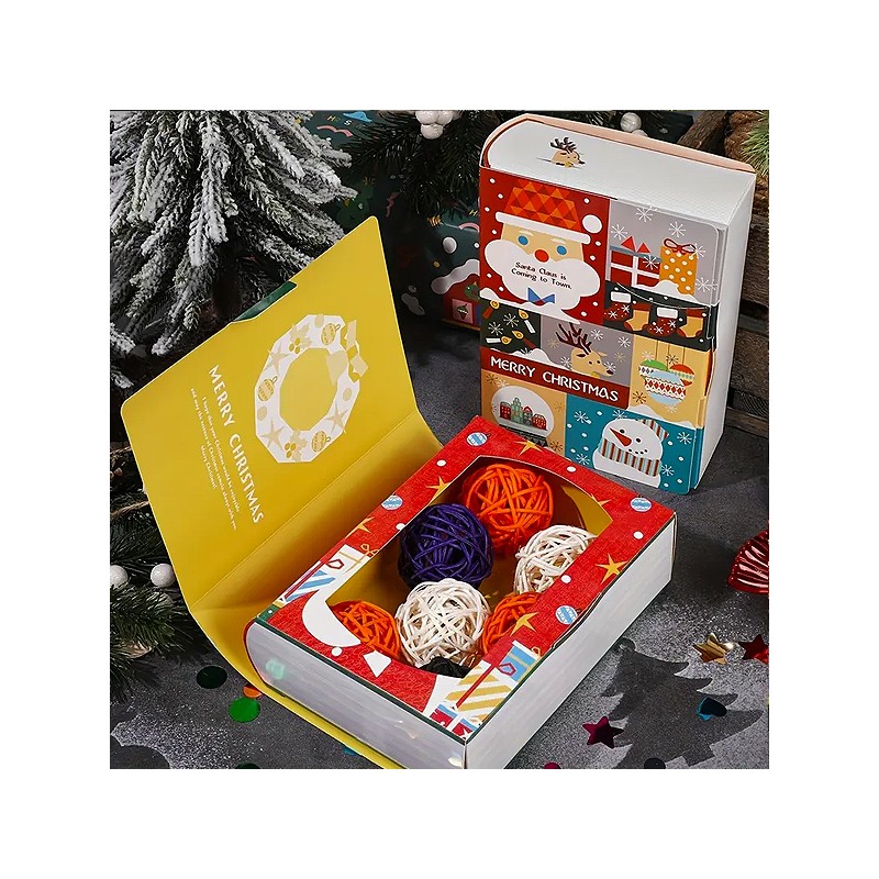 Célébrez la magie des fêtes avec ces boîtes cadeaux en forme de livre. Avec leurs designs colorés de Père Noël et de bonhomme de neige, elles sont parfaites pour emballer friandises, petits cadeaux ou servir de sacs de faveur lors de vos célébrations festives.