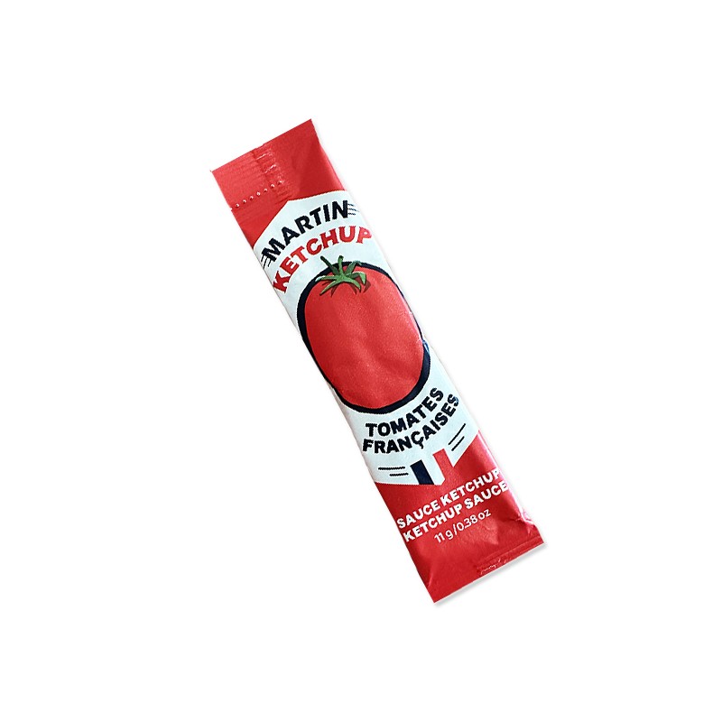 Le stick de ketchup Martin est une portion individuelle idéale pour accompagner vos frites, burgers, sandwiches ou snacks. Conditionné dans un sachet hermétique de 11 g, il garantit une utilisation propre, pratique et hygiénique, que ce soit en restauration, en livraison ou lors d’événements.